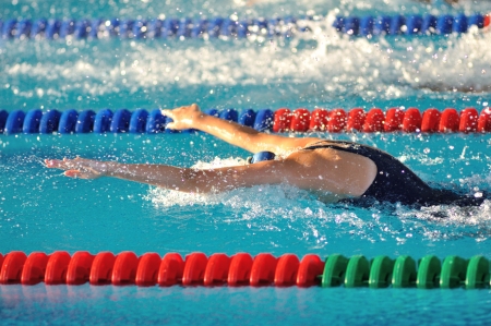 Chelyabinsk, Russia - October 21, 2015: athlete swims freestyle track of pool during Championship of Chelyabinsk swimming