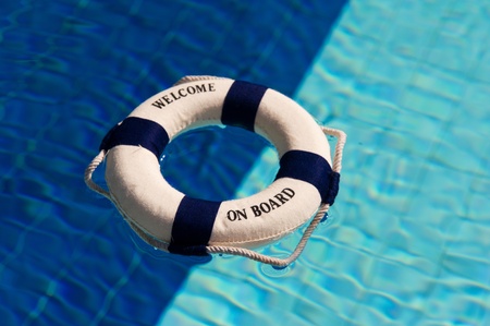 Welcome on board with life buoy in swimming pool