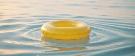 AI Generated. Yellow Inflatable Pool Ring Floating on Water