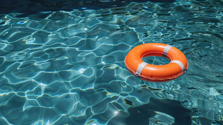 Vibrant Orange Lifebuoy in Crystal Clear Pool Water Bright Summer Day