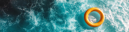 A vibrant yellow life ring drifts on serene blue waters inviting summer fun and adventure.