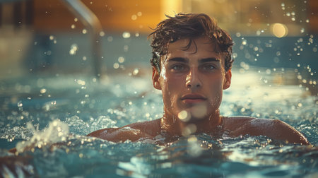 Professional swimmer competes in an indoor swimming pool race. Concept of competitions and motivation for sports