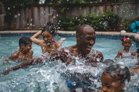 Family playing in water at swimming pool