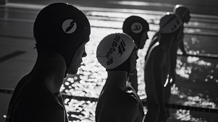 Practice Swim: Swimmers treading water as they prepare for their individual races.Generated with AI