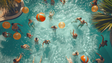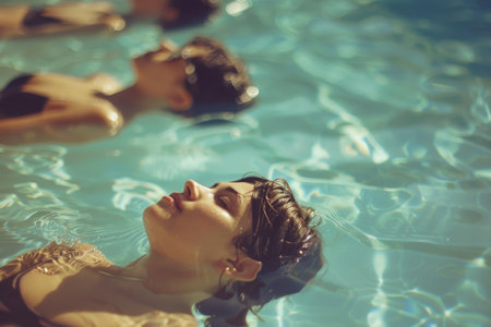 Young people in a pool summer vacation swimming fun swimwear diving freedom happiness relaxation goggles leisure activity hot weather warm comfy water excitement refreshing spa
