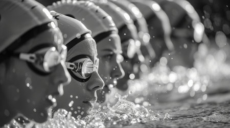 Swimmer s intense focus in freestyle stroke at summer olympics, showcasing sportsmanship