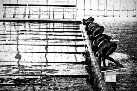 preparation of athletes to swim on swimming pool