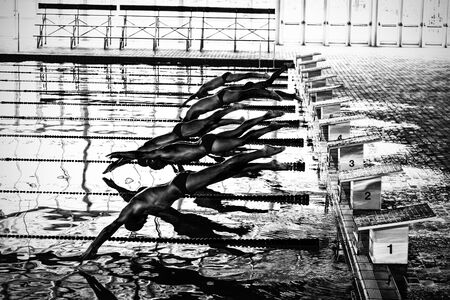 The swimmer's silhouette during the early racing in swimming