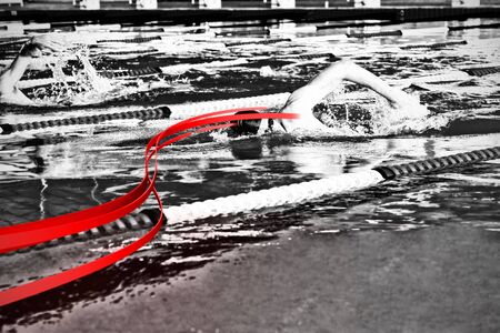 Professional athlete swims in the breaststroke in the pool. Mixed media