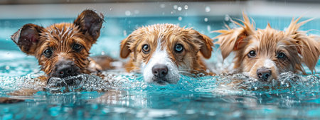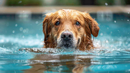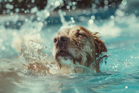 A dog swimming in a pool with water splashing around him, AI