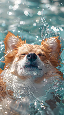 A waterloving Carnivore dog breed is swimming in the pool with closed eyes