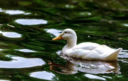 Beautiful duck swimming in the pool. Portrait of a duck.