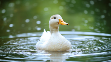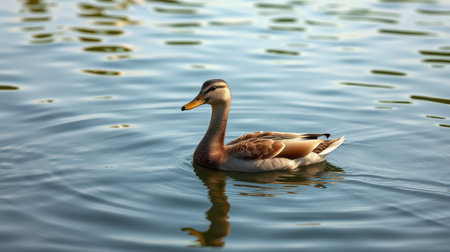 Duck swimming peacefully in a serene pond surrounded by gentle ripples on a sunny afternoon