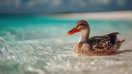 Duck on the beach on the caribbean island of Seychelles