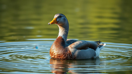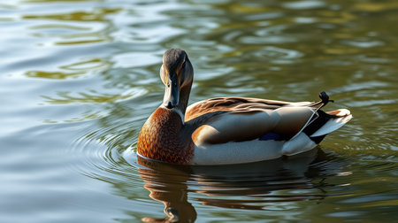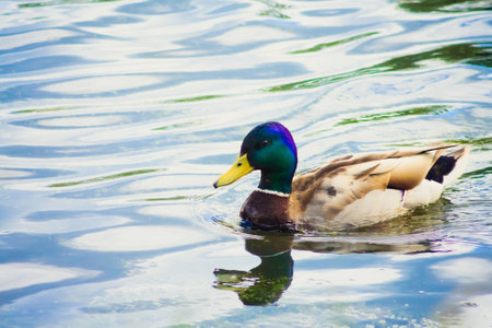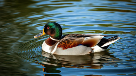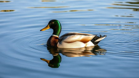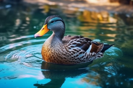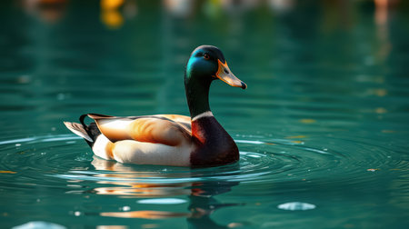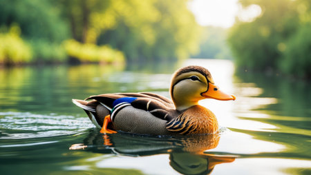 Duck swimming gracefully on the calm water reflecting its vibrant feathers during a sunny afternoon