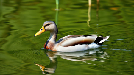 Generative AI : mallard duck Anas platyrhynchus swimming male duck