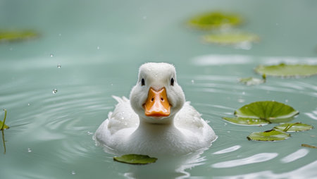 A happy duck swimming in a pond, its face reflecting joy and contentment.