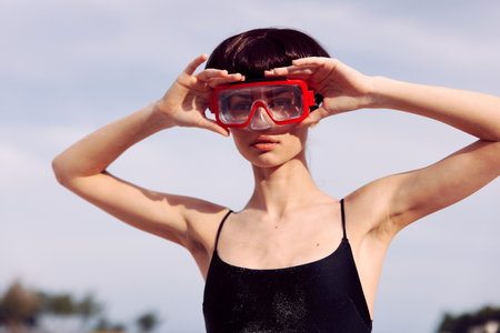 the exhilaration of swimming through the close-up lens capturing the vibrant expression of a young girl.close-up portrait of a woman doing water sports