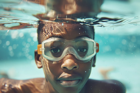 A young athlete practices their skills underwater, wearing sleek goggles and concentrating intently.