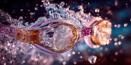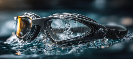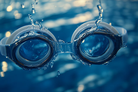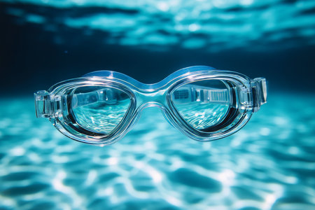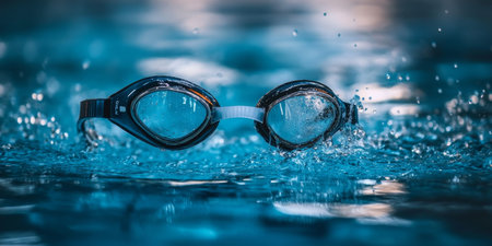 Dynamic Moments in the Water Colorful Swimming Goggles Captured in a Pool Background Setting