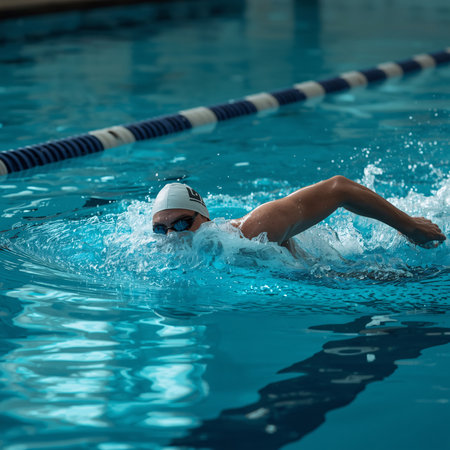 Focused swimmer gliding through water