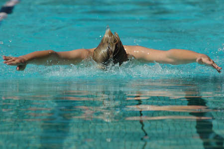 Bettering her time stroke by stroke. A focused young female swimmer doing the butterfly stroke.