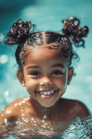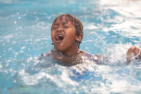 Little african child enjoying the summer in the pool