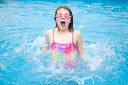 Young Girl jumping out of a Pool
