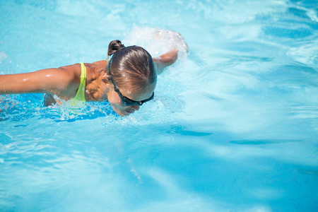 pretty swimmer teenager girl exercise in swimming pool