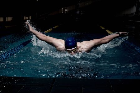 Professional male swimmer swimming in the pool