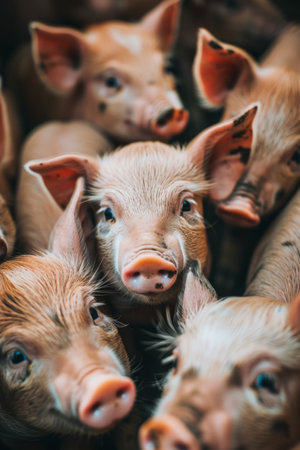 Curious Piglets Huddling Together in a Farm.