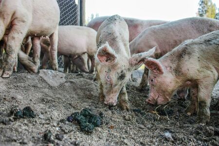 Ecological pigs and piglets at the domestic farm, Pigs at factory