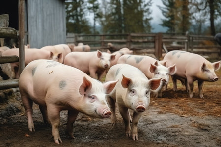Group of pigs in farm yard. generative ai