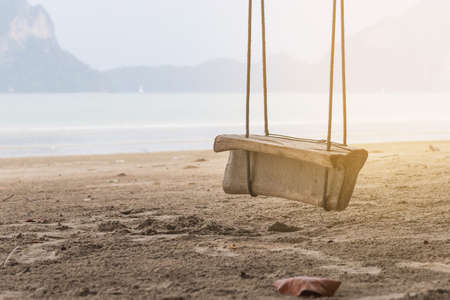 White sand beach wooden swing tranquil relax beautiful sea