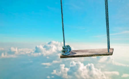 concept of summer traveling with wooden swing and the blue sky