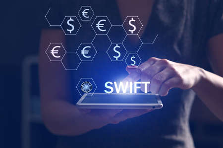 The word swap was written with wooden cubes. Close-up of spot lights and on a white table. Close up.