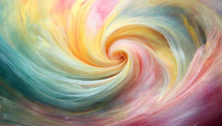 This artistic wallpaper showcases a mesmerizing fusion of twirling pastel colors, blending seamlessly into soft, calming gradients. Ideal for enhancing digital screens or inspiring creative and