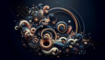 A 3D illustration of an abstract dark salmon spiral background