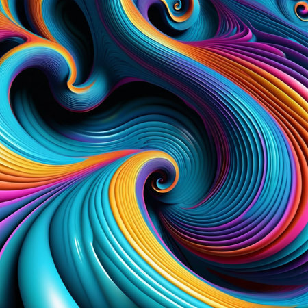 Abstract swirling vortex of vibrant multicolored lines and textures. Dynamic spiral pattern with flowing rainbow colors and intricate details