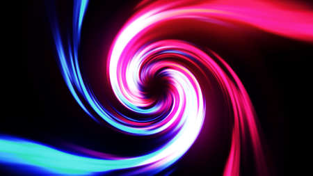 Abstract background with light trails, stream of red blue neon lines in space form spiral shapes. Modern trendy motion design background. Light flow bg. 3d render