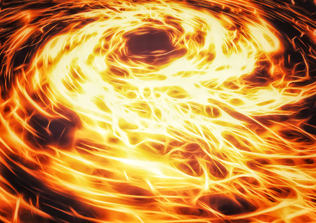 fiery hot background. red magma spiral. Swirling black, brown, red and orange lines. Abstract bright background.