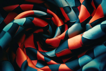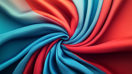 Colorful twisted fabric with shades of red and blue, abstract texture. Textile design and fashion concept