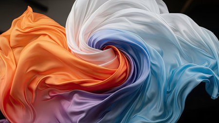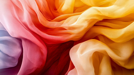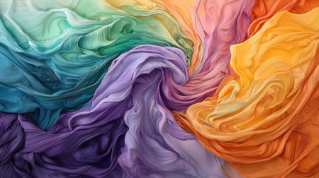 Abstract Palette of Colorful Silk Fabric Swirls Vibrant and Flowing Textiles.