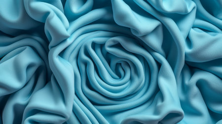 Top view of a cyan blue velvet fabric texture background with swirls. --chaos 30 --ar 16:9 --v 6.1 Job ID: 28279447-b63e-4aae-8157-d1a2c3bc204b