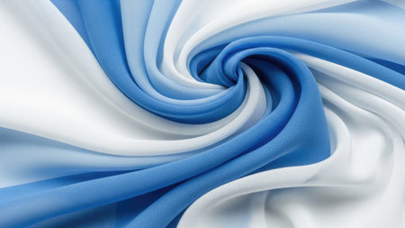 closeup of blue and white crepe satin fabric texture background