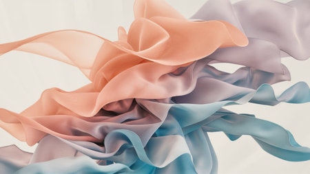 Gentle flowing waves of pastel-hued silk create a soothing, elegant composition with a delicate sheen and tender movement, perfect for backgrounds or refined design accents.