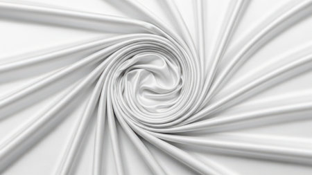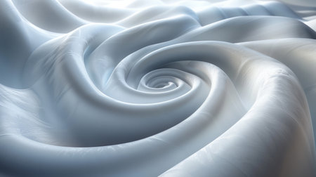 This image showcases a close-up view of a white, spiraling fabric or ribbon. The fabric appears to be smoothly flowing, creating a sense of motion and depth. The spiraling pattern is symmetrical and continuous, with the lines converging towards the center.