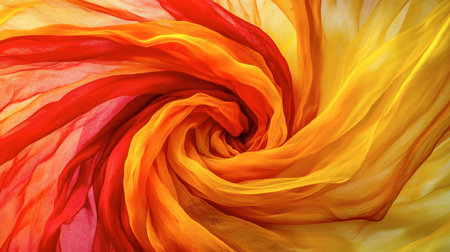 A stunning abstract image featuring vibrant swirls of fabric in red and yellow colors, showcasing texture and movement. Perfect for artistic projects.