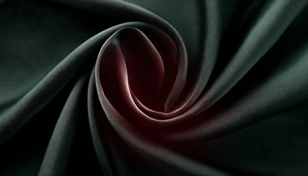 Captivating close-up view of dark fabric creating a swirling motion, presenting an elegant and sophisticated texture that enhances design projects and artistic visions.