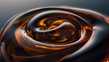 an orange-colored swirl of liquid fills the surface, resembling a dark sky-blue and light beige psychological phenomena illustration. the image showcases a realistic hyper-detail with surrealistic spiral group formations. the liquid appears to be poured, creating a captivating blend of dark white and red hues. ai generated